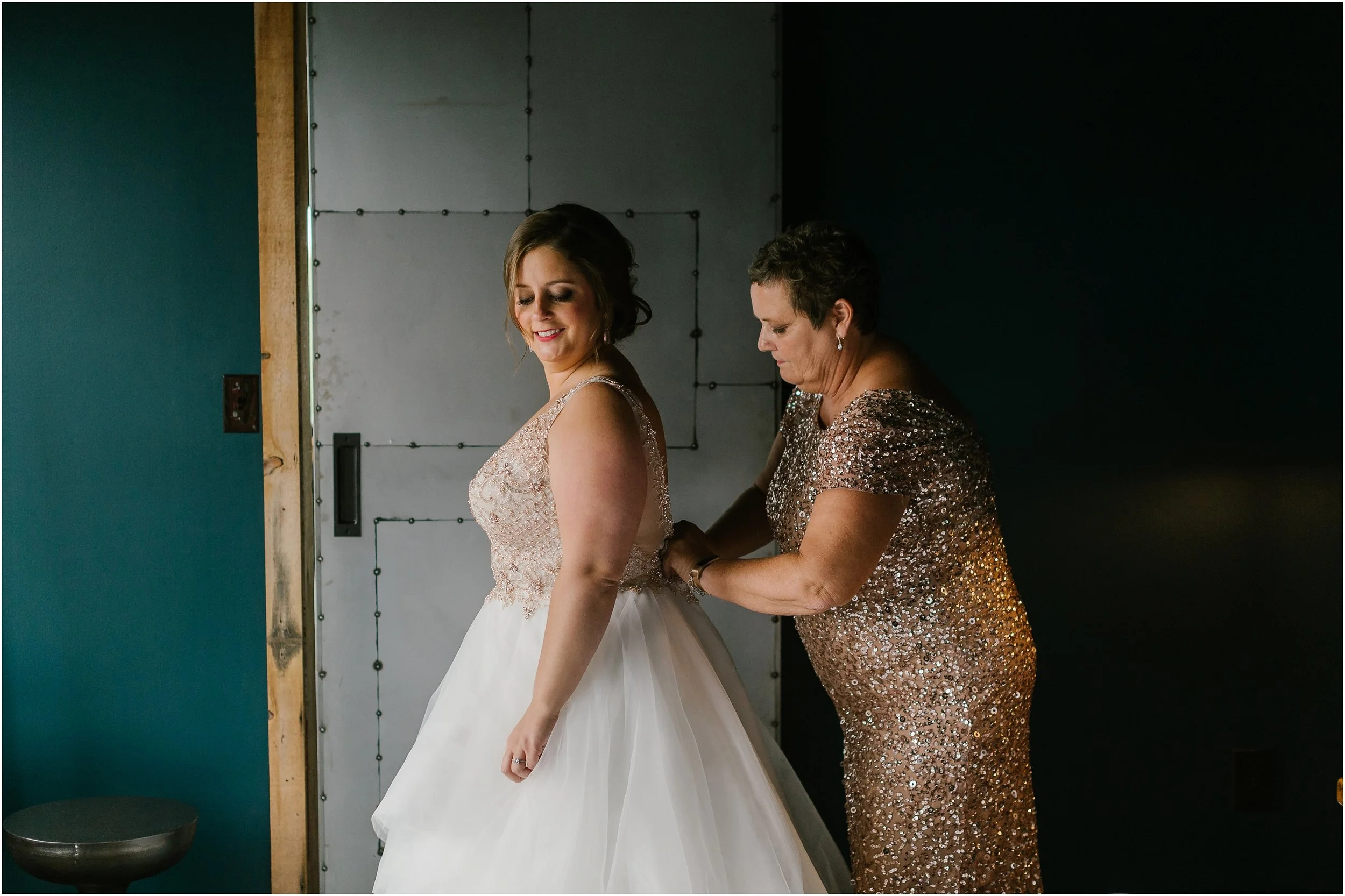 - First of all, Anica's dress was straight out of some rose gold fantasy! The beading, the tulle, the layers. Seriously you guys, the pictures are beautiful, but real life, this dress was amazing. She also had her sweet momma there to help her put her dress on.